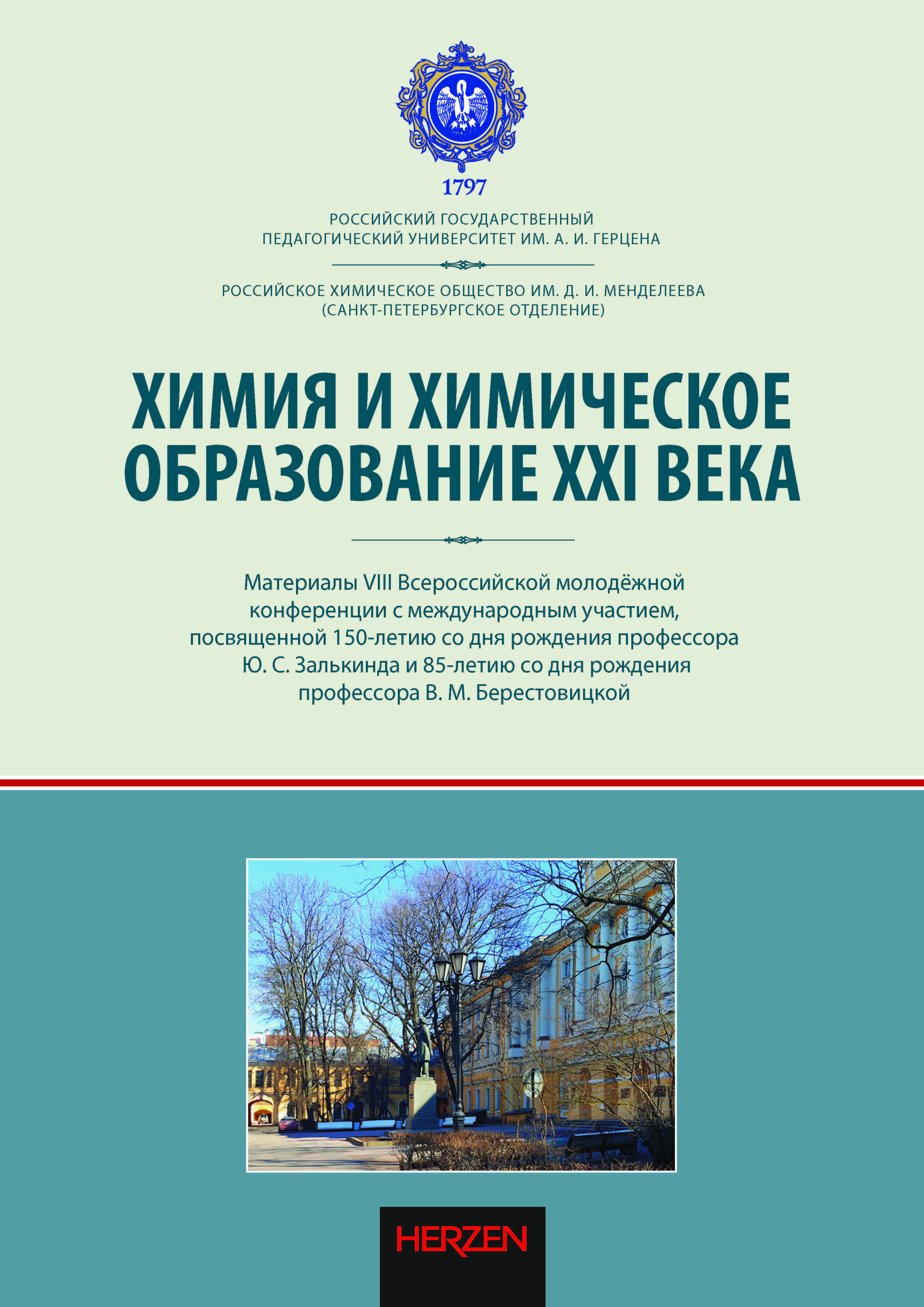 Химия и химическое образование XXI века : материалы VIII Всероссийской молодежной конференции с международным участием, посвященной 150-летию со дня рождения профессора Ю. С. Залькинда и 85-летию со дня рождения профессора В. М. Берестовицкой / ответственные редакторы: В. В. Пелипко, Р. И. Байчурин, Е. И. Исаева ; Российский государственный педагогический университет им. А. И. Герцена, Российское химическое общество им. Д. И. Менделеева (Санкт-Петербургское отделение). —